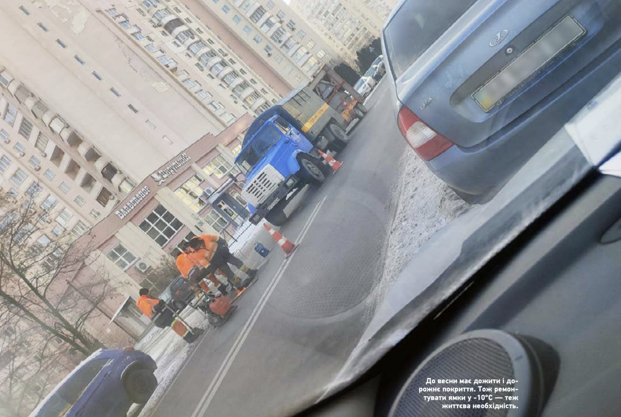 До весни має дожити і дорожнє покриття. Тож ремонтувати ямки у -10°C — теж життєва необхідність.